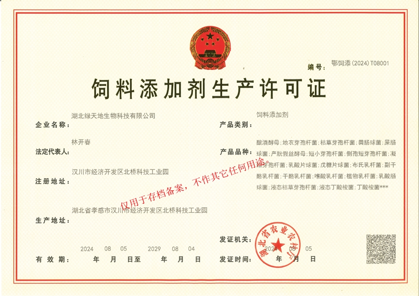 湖北綠天地生物科技有限公司 (簡(jiǎn)稱綠天地公司)投資7000萬(wàn)元,擁有25000平方米的廠房和國(guó)內(nèi)先進(jìn)的設(shè)備360臺(tái)套,建有微生物發(fā)酵、發(fā)酵冷凍干燥、低溫造粒等8個(gè)車(chē)間,發(fā)酵罐總?cè)萘?50立方米,專業(yè)的飼用級(jí)益生菌發(fā)酵生產(chǎn)基地。 公司已通過(guò)IS09001:2015質(zhì)量管理體系認(rèn)證。 綠天地公司得到了華中農(nóng)業(yè)大學(xué)、中國(guó)農(nóng)...